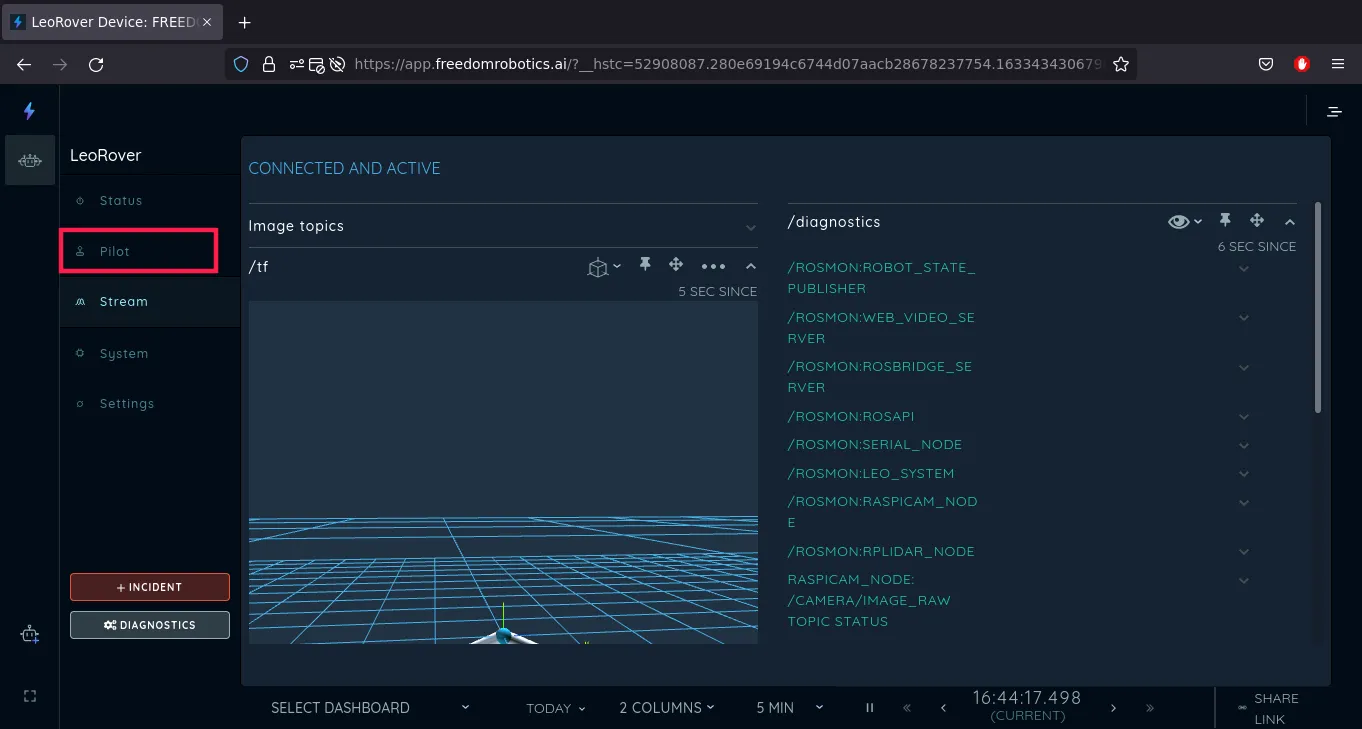 After following the tutorial You'll have the ability to control the Leo Rover and gather data from anywhere in the world using Freedom Robotics GUI.